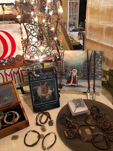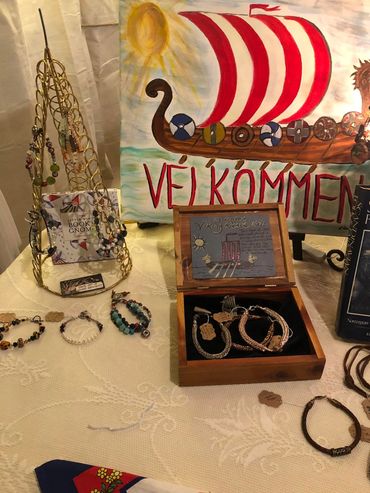 Tokerud Designs specializes in creating Viking wire weaving, and other one-of-a-kind gemstone beaded jewelry, hand painted Nordic watercolor artwork depicting Viking ships, gnomes, and our favorite, Nordic mushroom people. Other items consist of knitted dishcloths in Scandinavian colors, Sand dollar ornaments and forest mushroom art and the resale of Scandinavian books and Nordic treasures.